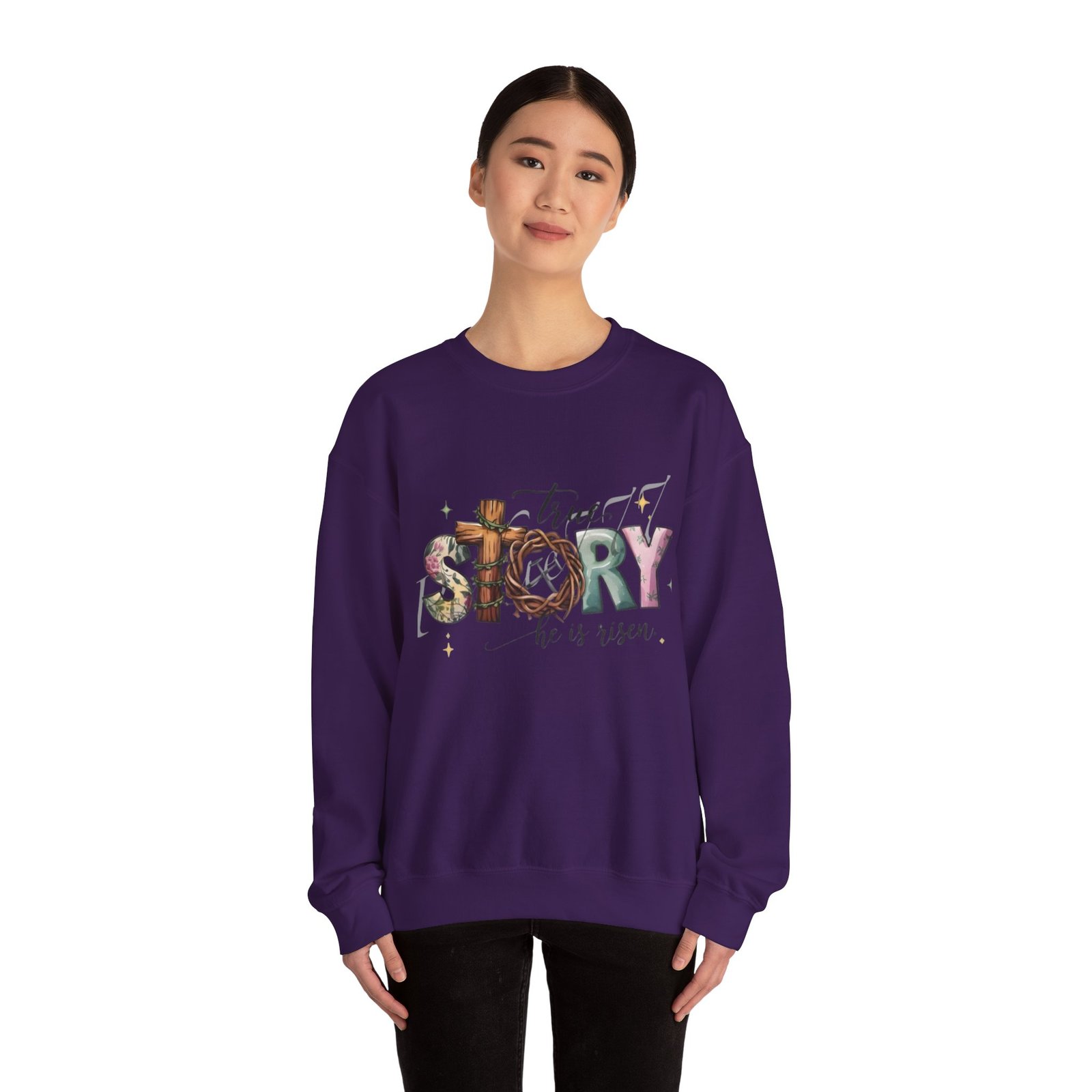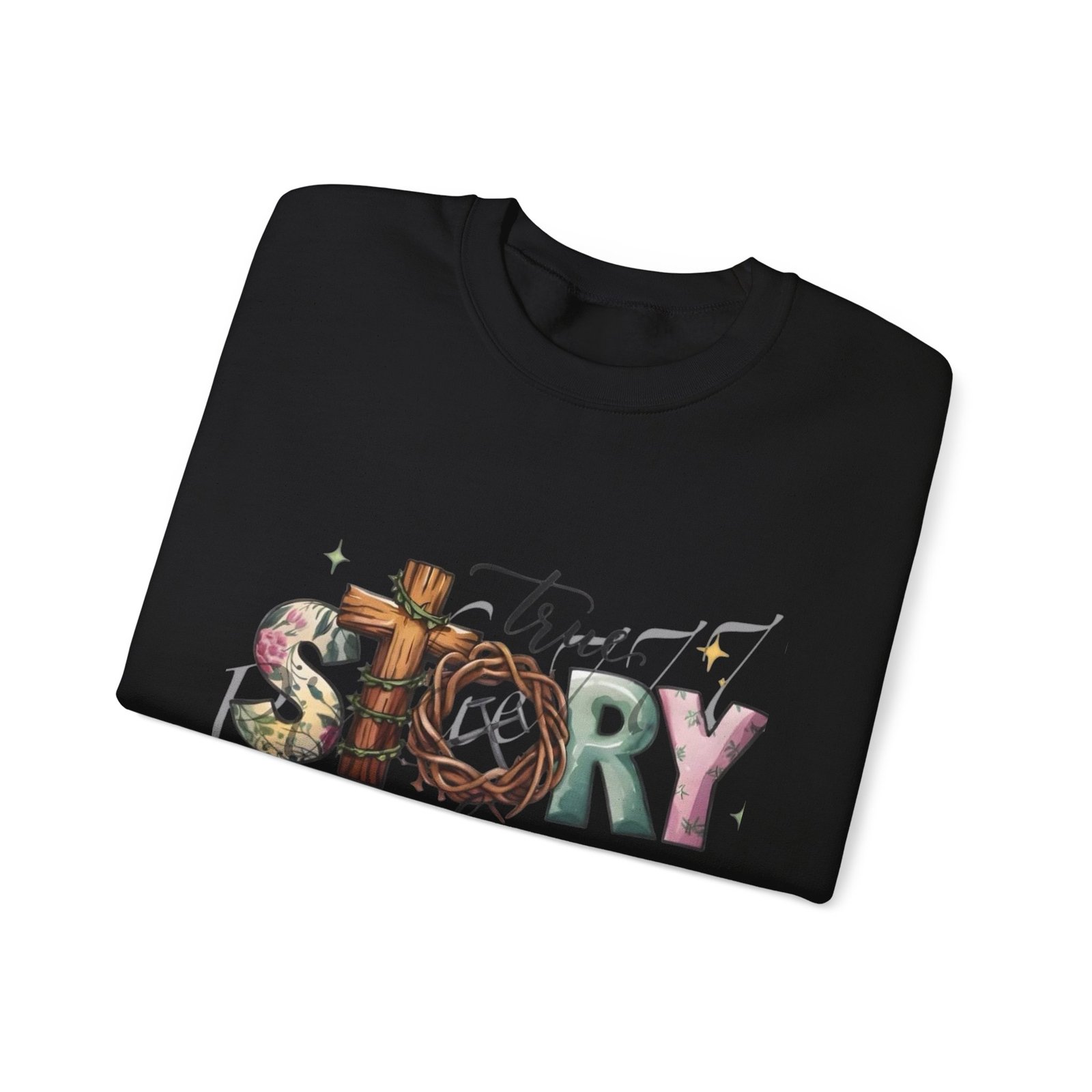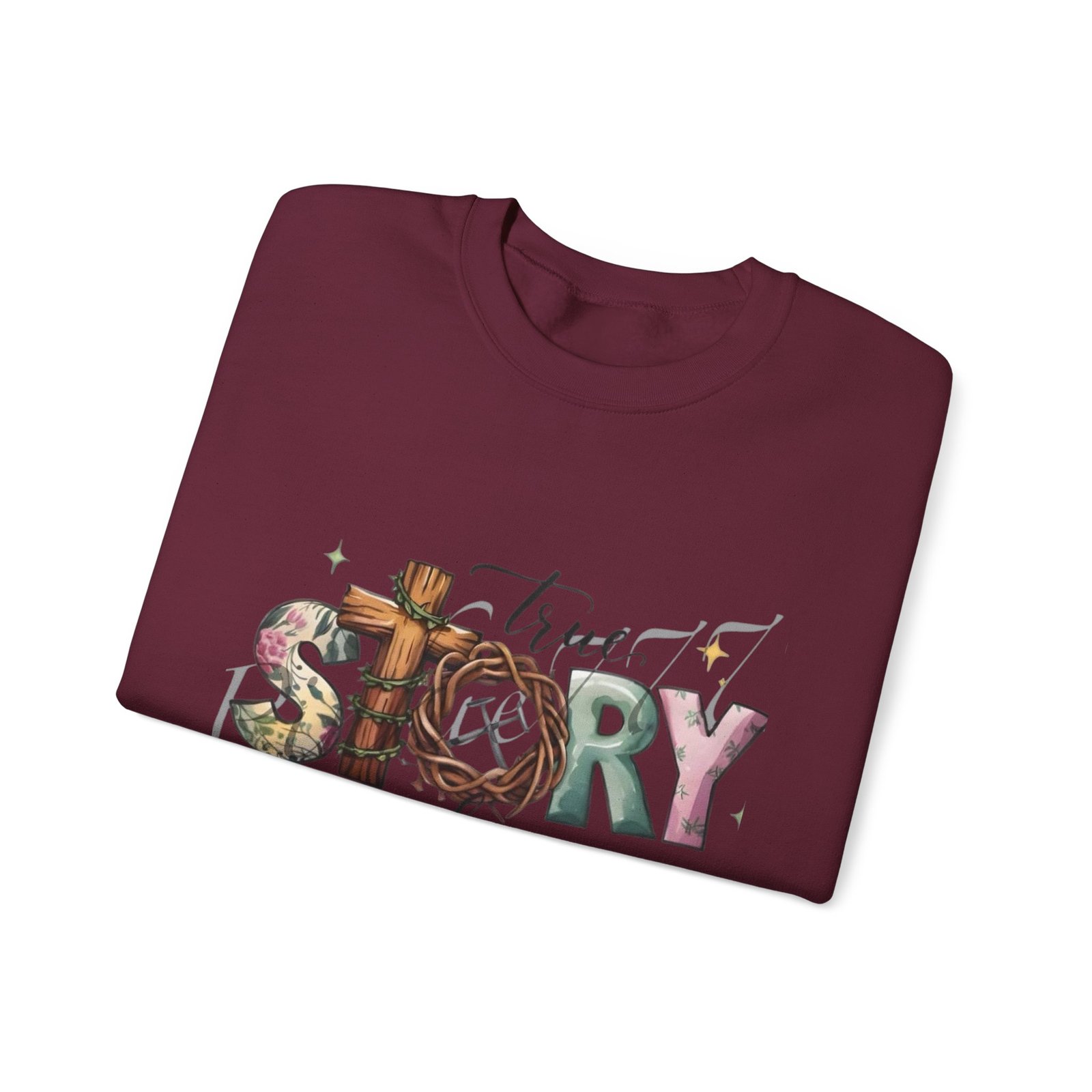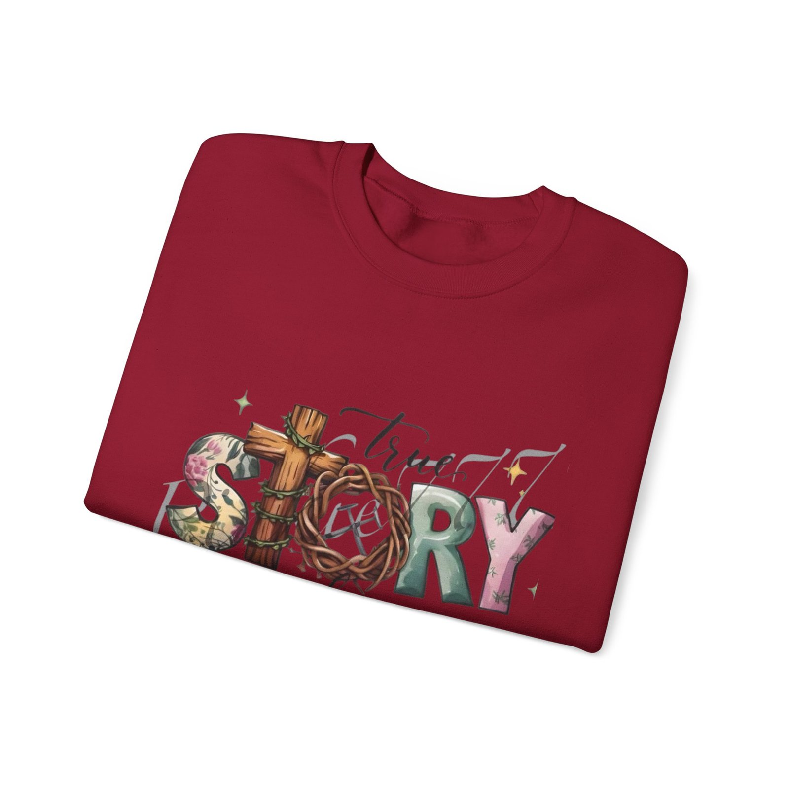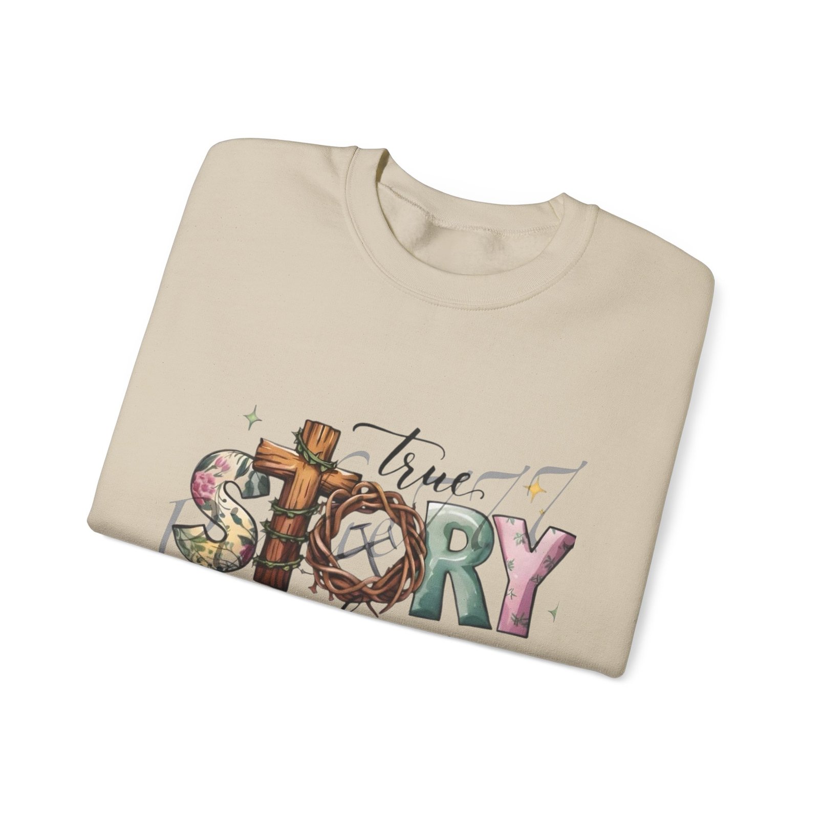 Crewneck Sweatshirt — 'True Story He Is Risen' Easter Cross Christian DesignCrewneck Sweatshirt — ‘True Story He Is Risen’ Easter Cross Christian Design