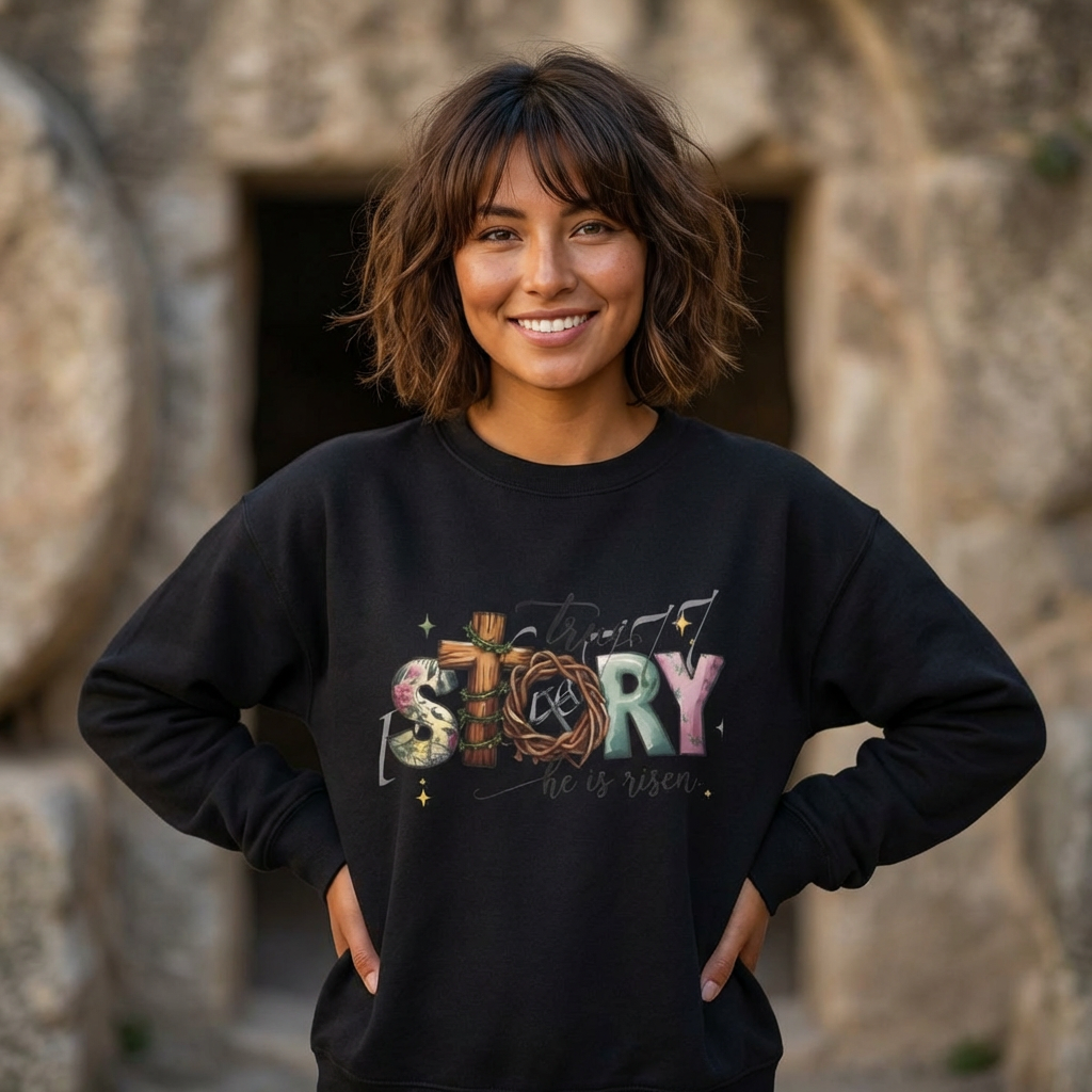 Be the first to review “Crewneck Sweatshirt — ‘True Story He Is Risen’ Easter Cross Christian Design”