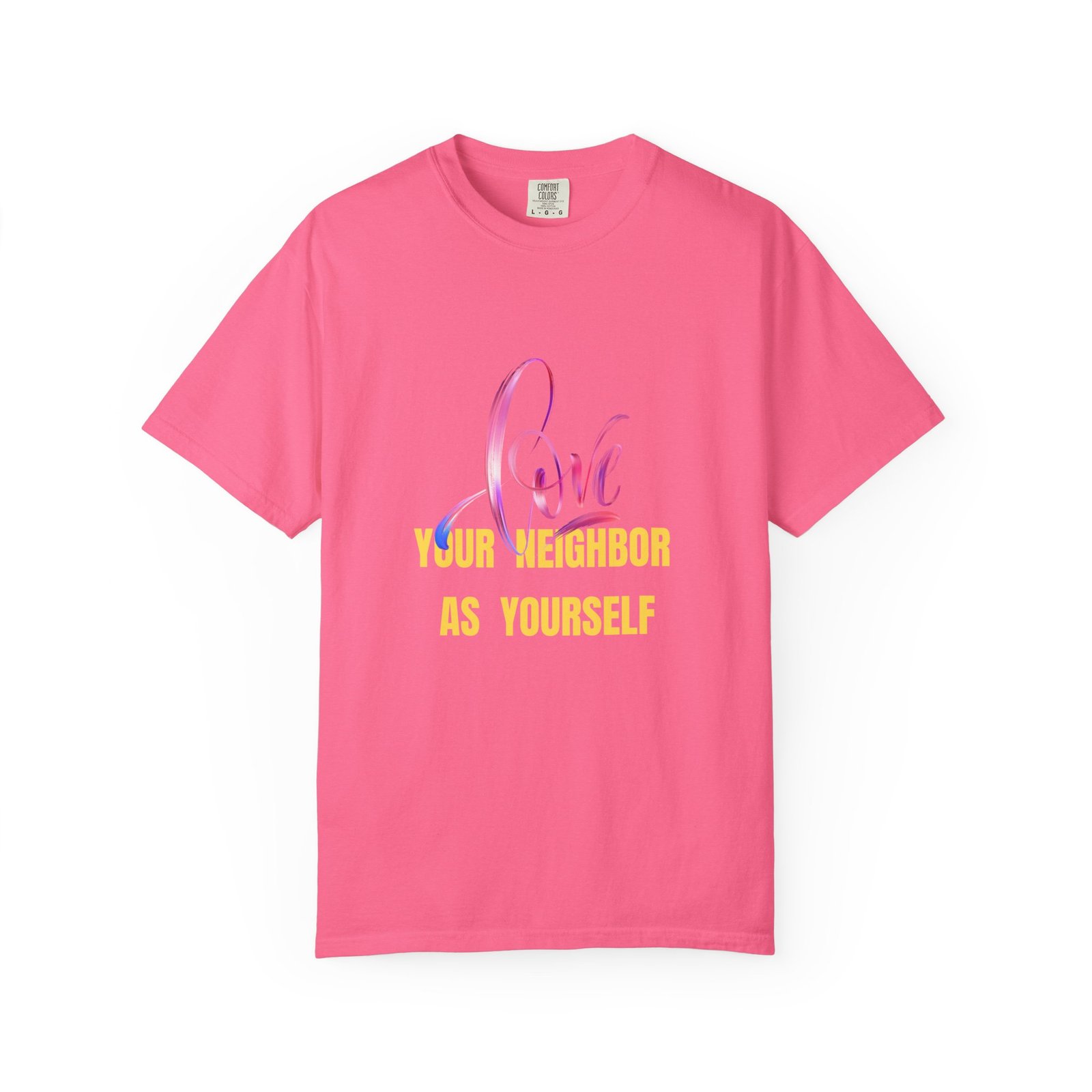 Embrace comfort and style with this unisex garment-dyed t-shirt, perfect for everyday wear or a relaxed outing. The soft color and cozy texture invite compliments while offering a casual yet polished vibe. Ideal for individuals who appreciate sustainable fashion and quality craftsmanship, this t-shirt suits anyone looking to express their personality while staying comfortable. It’s a thoughtful gift for birthdays, housewarming parties, or just because, making it a versatile addition to any wardrobe. Celebrate community and kindness with its meaningful design, perfect for occasions like Friendship Day, Community Outreach events, or simply lounging at home.