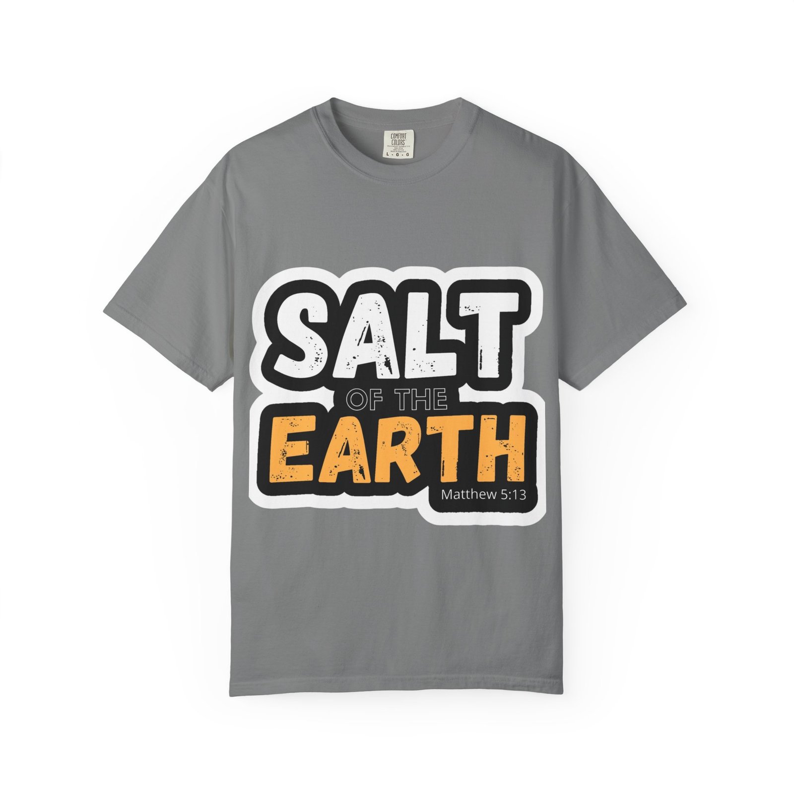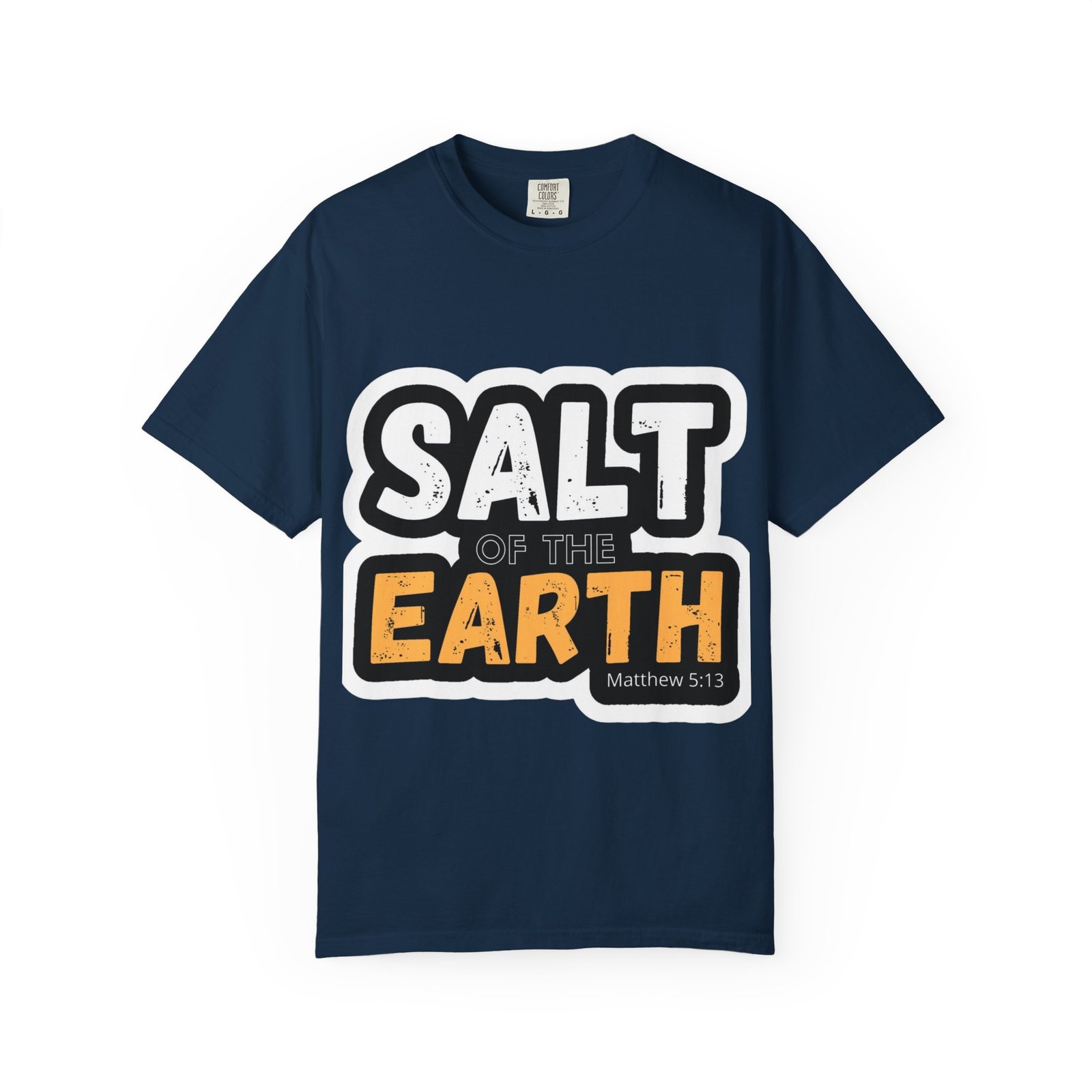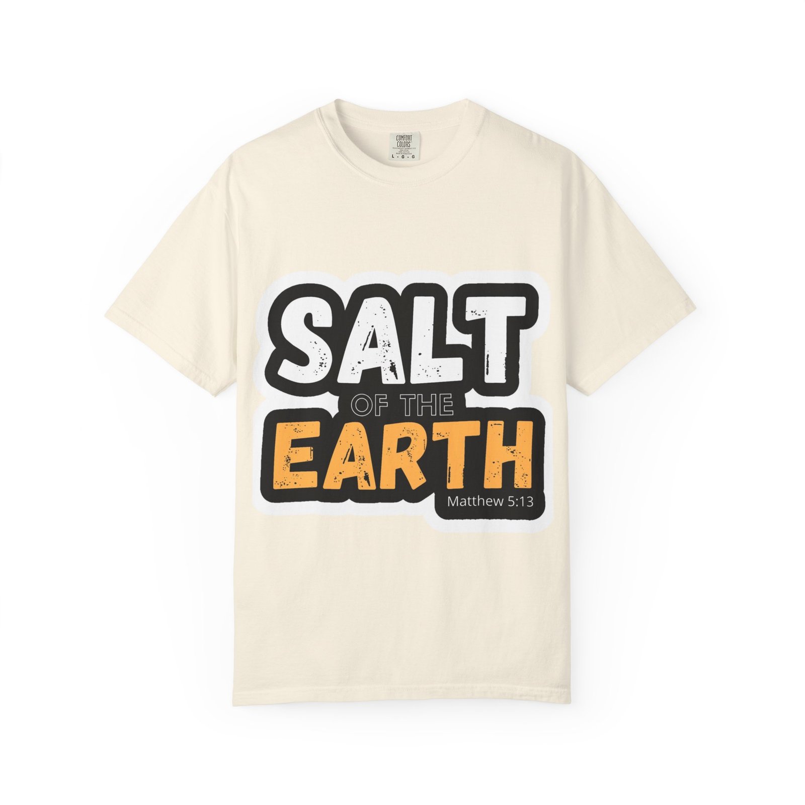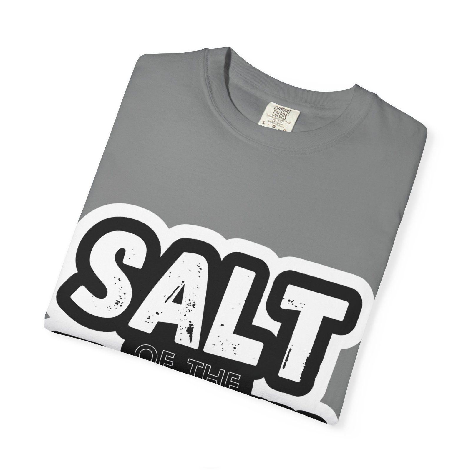 This garment-dyed tee reads like a small declaration you can wear. Bold, slightly distressed lettering spells “SALT OF THE EARTH” with a pop of warm amber on “EARTH,” giving the design a rugged, earnest feel. The relaxed, midweight cotton drapes comfortably through long days of service, volunteering, or casual meetups. It pairs naturally with worn jeans, work boots, or layered under a flannel for cooler mornings — a quietly confident shirt for people who value substance over show. The soft, broken-in color and sewn-in label add a lived-in comfort that invites repeated wear and stories.
