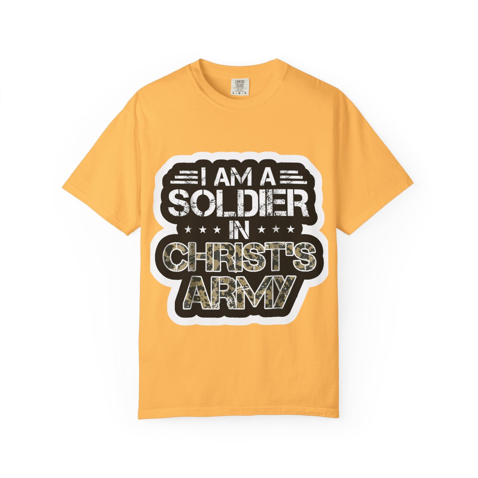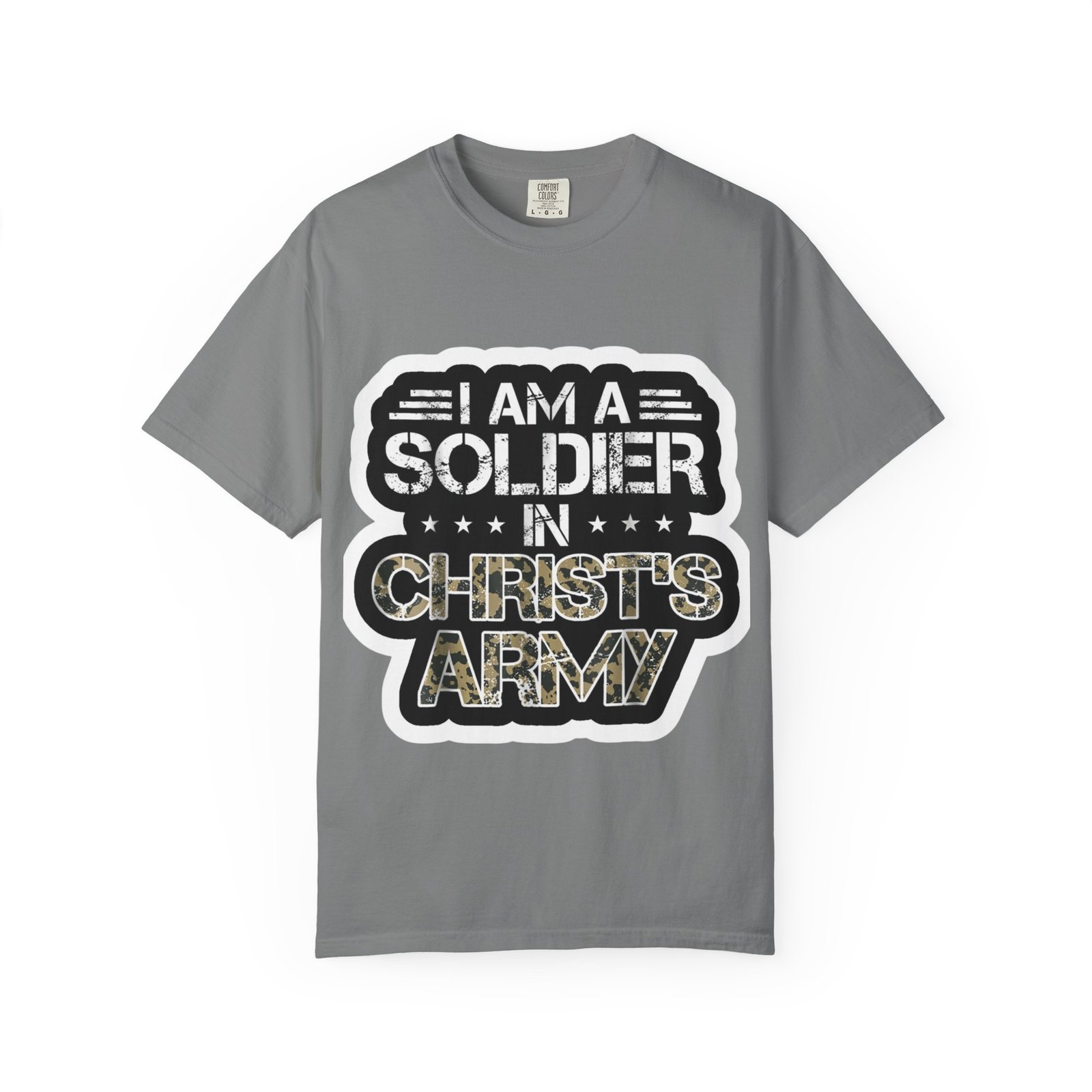 Soft, sturdy, and quietly bold — this garment-dyed tee carries a message with heart. The relaxed fit and medium-weight 100% ring-spun cotton drape easily over everyday life, while the sing-song print declares faith with a rugged, military-inspired look. Wear it to small group nights, outreach events, volunteer days, or just while running errands; it reads like a personal creed without shouting. The garment-dye finish gives the cotton a lived-in softness and subtle depth of color that only gets better with time. Because it’s made with tubular knit and double-needle stitching, the silhouette stays clean and the tee stands up to frequent wear and washes. A sewn-in label and pre-shrunk construction mean comfort from the first wear onward.