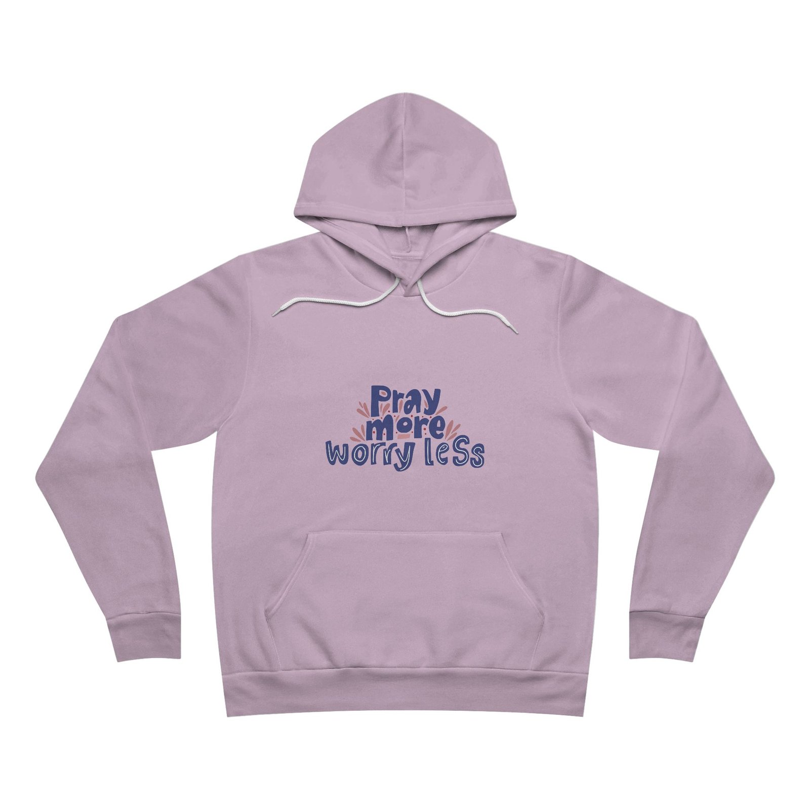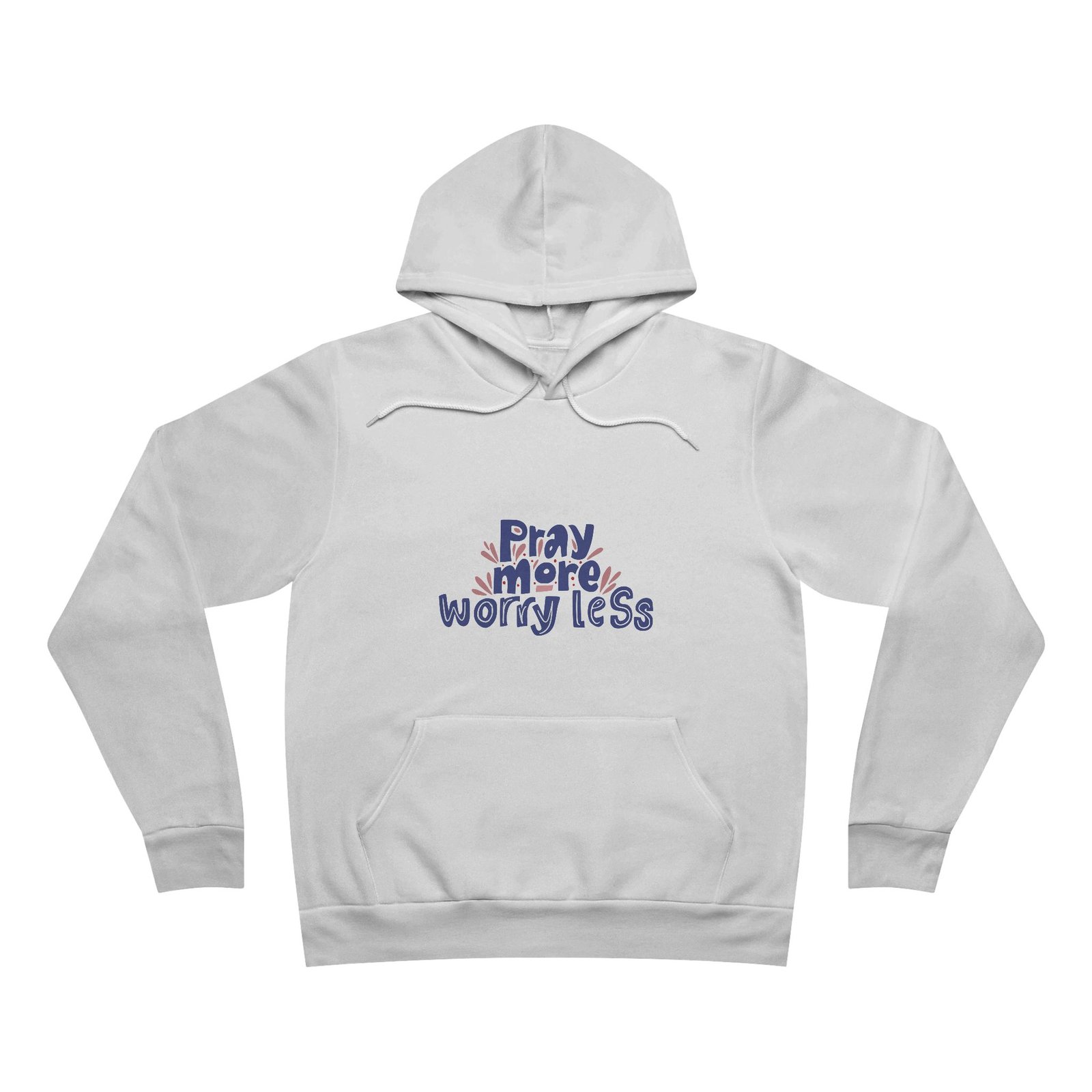 The unisex sponge fleece pullover hoodie is a blend of Airlume cotton and polyester. The percentages vary according to color. A pouch-style pocket spreads across the lower half of the garment’s front. The hood can be tightened with a white drawcord. Both cuffs and waistband have ribbing for extra grip.